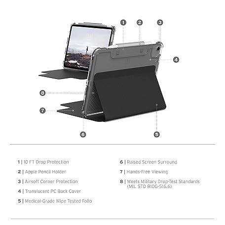 Thương hiệu URBAN ARMOR GEAR là cái tên nổi tiếng được rất nhiều khách hàng trên thế giới chọn lựa. Với kiểu dáng đẹp mắt, sang trọng, sản phẩm U by UAG [U] Lucent Case for Apple iPad Air 10.9 Case (5th Gen 2022/4th Gen 2020) / iPad Pro 11 Case (2022/2021/2020/2018) [Apple Pencil 2 Compatible, Wake/Sleep] Black là sự lựa chọn hoàn hảo nếu bạn đang tìm mua một món cho riêng mình.