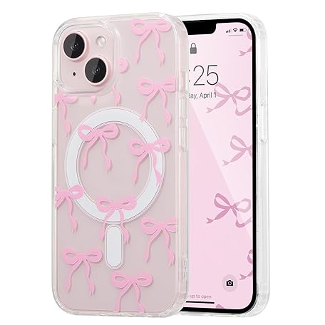 Sản phẩm UEEBAI Magnetic Case for iPhone 13/iPhone 14, Cute, Silicone, Tansparent, with Bow Pattern, Protective, Supports Wireless Charging, Soft Bumper Case for Women, Girls, Pink đang được bán với giá ưu đãi là $13.952 tại nước Đức.
