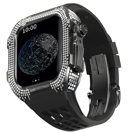 Uhrenarmband und Gehäuse-Set, für Apple Watch 6, 5, 4, SE, 44 mm, luxuriöses Fluorkautschukband, Titan-Uhrengehäuse, für iWatch 6/5/4/SE, 44 mm Serie, Upgrade-Modifikation