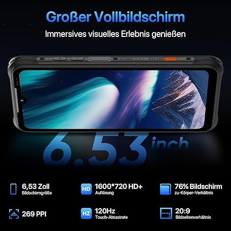 Thông tin sản phẩm UMIDIGI X20 Outdoor Mobile Phone Without Contract, 6 + 6 GB + 128 GB/1 TB Smartphone 4G, IP68 Mobile Phone Waterproof, 6000 mAh 6.53 Inch HD+ Display, Android 13 Smartphone without Contract, Octa Core