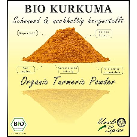 Thương hiệu Uncle Spice là cái tên nổi tiếng được rất nhiều khách hàng trên thế giới chọn lựa. Với kiểu dáng đẹp mắt, sang trọng, sản phẩm UNCLE SPICE® Organic turmeric - 200 g turmeric root ground, 2.5-3.5% curcumin, Curcuma Turmeric Superfood, turmeric powder in premium quality - organic turmeric powder, DE-ÖKO-005 là sự lựa chọn hoàn hảo nếu bạn đang tìm mua một món cho riêng mình.