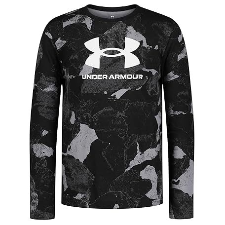 Under Armour Jungen Outdoor-Langarm-T-Shirt, stilvoller Rundhalsausschnitt, niedlich, volle Passform, Black Rock Shades, S
