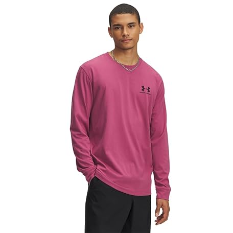 Under Armour Sportstyle Herren-Langarm-T-Shirt auf der linken Brust, (659) Fuchsia Dusk/Schwarz, XL