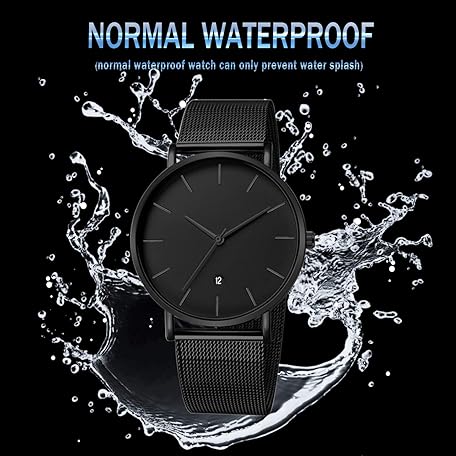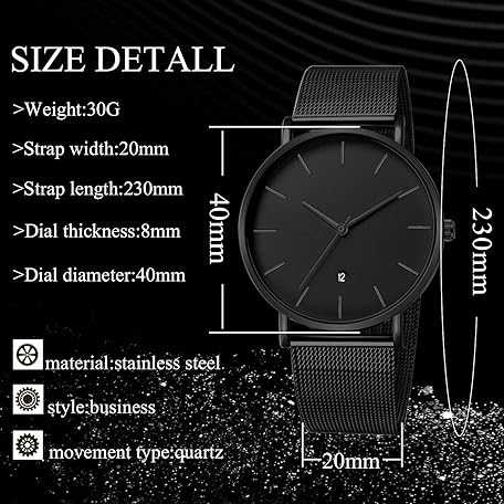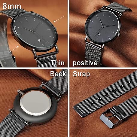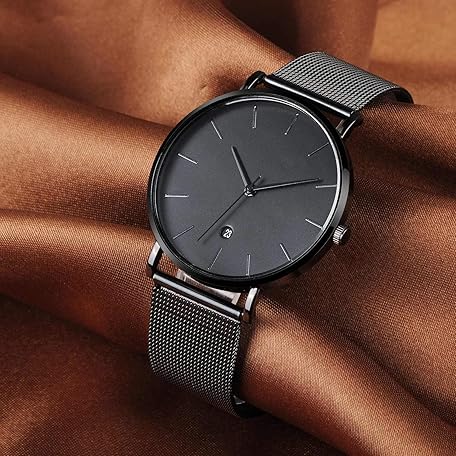 Thông tin sản phẩm Unendlich U Men's Watch Ultra Thin Stainless Steel Mesh Bracelet Fashion with Date Display 30M Waterproof Analogue Quartz Watch Milanese Strap, black, Minimalist