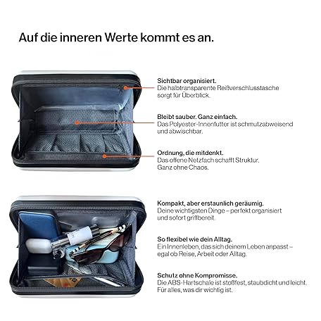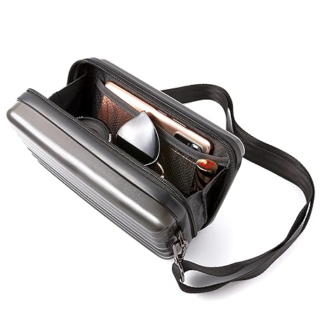 Sản phẩm Unibag Shoulder Bag with Shoulder Strap Zip Mini Suitcase Water-Repellent Handbag Inner Pockets Cosmetic Bag Hard Case for Hanging Women Men Suitcase Shape Hard Case, gray, S, Minimal đang được bán với giá ưu đãi là $32.0896 tại nước Đức.