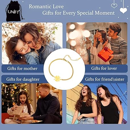 Sản phẩm UNIFT Four Leaf Clover Bracelet for Women Stainless Steel Clover Lucky Adjustable Bracelets Irish Jewelry ST Patricks Day Gifts đang được bán với giá ưu đãi là $11.3687 tại nước Đức.