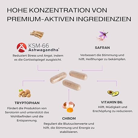 Sản phẩm Unik Emotional Wellbeing | Anxiety, Stress, Mood Supplement | Ashwagandha KSM-66 100% Organic + Saffron + Tryptophan + Chrome Vitamin B6 | 60 Capsules | Lab Unik Health & Nutrition đang được bán với giá ưu đãi là $25.0482 tại nước Đức.
