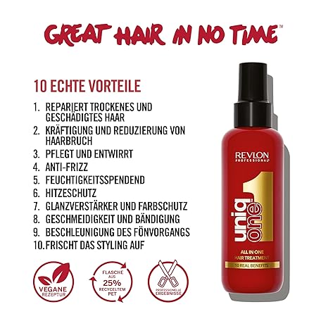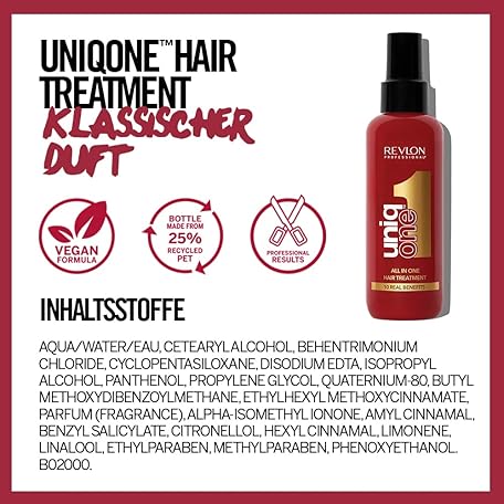 Sản phẩm UniqOne Hair Treatment Classic, 150 ml, Spray Treatment for More Volume, Smoothness & Easier Combing, Hair Care without Rinsing, Spray Helps Prevent Split Ends đang được bán với giá ưu đãi là $13.3198 tại nước Đức.