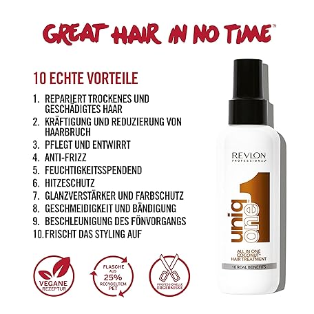 Sản phẩm UniqOne Hair Treatment Coconut 150 ml Spray Treatment for More Volume, Smoothness & Easier Combing, Hair Care without Rinse, Spray Helps Prevent Split Ends. đang được bán với giá ưu đãi là $10.9109 tại nước Đức.