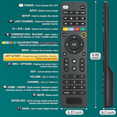Thông tin sản phẩm Universal TV Remote Control for TV, Universal Remote Control for Samsung, LG, Sony, Hisense, TCL, Panasonic, Philips, Streaming Player, Soundbar Audio, DVD/Blu-ray Player