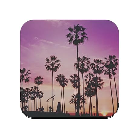 Untersetzer aus Holz – Sonnenbeschichtung Strand Los Angeles Kalifornien Palmen – 1 Einheit (95 x 95 mm)