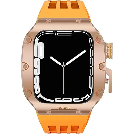 Upgrade Titanlegierung Uhrengehäuse für Apple Watch Serie 8, 7, 6, 5, 4, SE, 45 mm, 44 mm, Gummi-Uhrenarmband, Mod Kit, Sportarmband mit Edelstahl-Verschluss, Uhrenzubehör