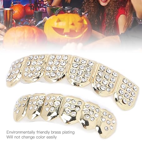 • UPQRSG Diamond Grillz, Safe, Wear-Resistant, Practical Hip Hop Teeth, Strong Practicality, More Attractive Diamond Teeth, for Halloween Party (Golden)
