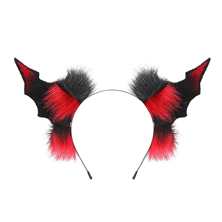 Uqezagpa Halloween Devil Kostüm Kunstpelz Fledermaus Ohren Stirnband Devil Tail Cosplay Party Accessoires Für Erwachsene Frauen Männer Cosplay Party Accessoires