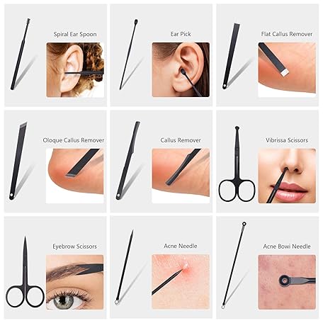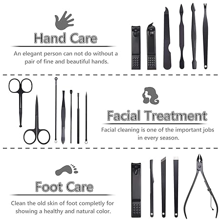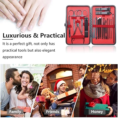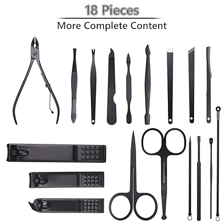 Thông tin sản phẩm URAQT Manicure Set, 18-Piece Pedicure Nail Clippers Set, Stainless Steel Care Tools with Black PU (polyurethane) Leather Bag, Professional All-Round Hand Foot Care Kit for Men and Women (Black - Red Inside)