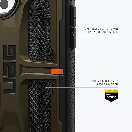 Thông tin sản phẩm URBAN ARMOR GEAR Monarch Protective Case Compatible with Apple iPhone 15 Pro Max Case [Wireless Charging Compatible, 5-Layer Military Standard Protection, Raised Edge] Kevlar Green