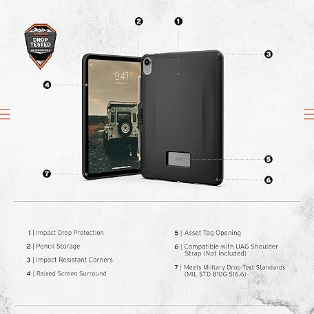 Thông tin sản phẩm Urban Armor Gear Scout Case for Apple iPad 10.9 Case (10th Generation / 2022) Protective Case [Apple Pencil/Logitech Crayon Holder, Apple Smart Cover/Smart Keyboard Compatible] Black