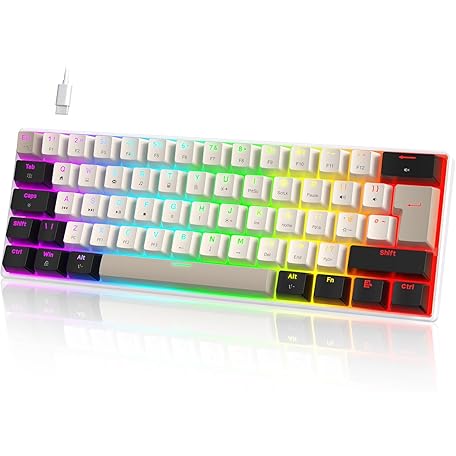 UrChoiceLtd MK21 Gaming Keyboard, 60% Wired Mechanical Keyboard, 61 Keys Compact UK Layout, Hot Swappable, RGB Lighting, Anti-Ghosting, Red Switch for PC, MAC, Gamer - Star White