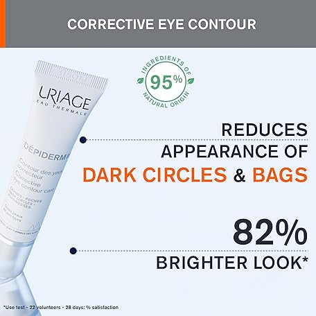 Thông tin sản phẩm Uriage Depiderm Corrective Eye Care with Vitamin C & Destran Sulphate - for Dark Circles, Swollen Eyes, Crow's Feet - Fragrance-Free - 95% Ingredients of Natural Origin - 15 ml