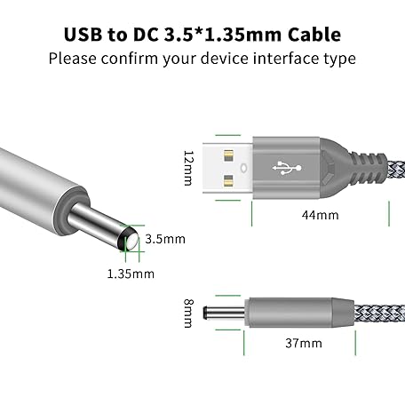 Thông tin sản phẩm USB to DC Power Cable, Power Cable, 5 Volt DC Extension Cable, 3.5 mm x 1.35 mm DC Connection Cable, USB A Male to DC Barrel Plug Connector for Foreo Luna 4 Mini Luna 4 Plus Luna Mini 2 Luna 3 Plus 4