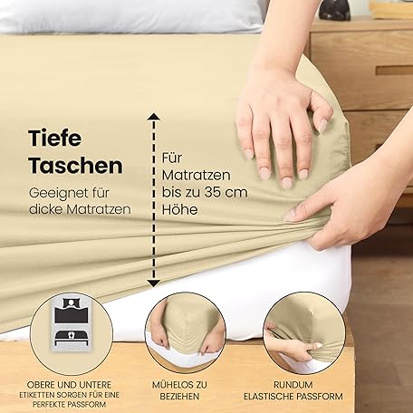 Sản phẩm Utopia Bedding - Fitted Sheet 200 x 200 cm - Beige - Oeko-Tex Certified Brushed Polyester Microfibre Fitted Sheet - 35 cm Deep Pocket đang được bán với giá ưu đãi là $15.0529 tại nước Đức.