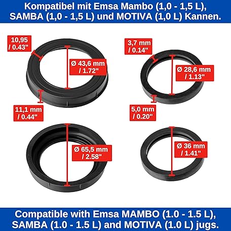 Sản phẩm Vacuum Flask Replacement Seals, 2 Sets Compatible with EMSA MAMBO, Motiva, Samba Thermos Flasks with 1.0 L, 1.5 L, Food Silicone, Teapot Coffee Pot Sealing Ring, Glass Insert Lid Sealing Ring đang được bán với giá ưu đãi là $11.1289 tại nước Đức.