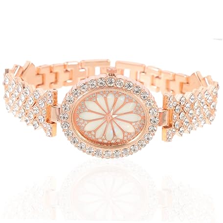 VALICLUD 2stücke Damen Armbanduhr Mit Strass Elegante Quarzuhr Für Frauen Verstellbare Handgelenkuhr Im Roségold-Design Für Alltag Und Besondere Anlässe