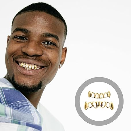 Sản phẩm VALICLUD Gold-Plated Hip Hop Teeth Grill-Z Punk Custom Teeth Grill Z Caps Top and Bottom Grill Set Vampire Hip Hop Mouth Grills for Halloween Night Party, Mother Of Pearl, No gemstone đang được bán với giá ưu đãi là $12.4696 tại nước Đức.