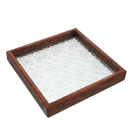 VALICLUD Rustikales Holztablett Quadratisch Mit Glas Oberfläche Vielseitiges Serviertablett Für Tee Snacks Und Schmuck Pflegeleicht Elegantes Neues Chinesisches Design Für Badezimmer Und Wo