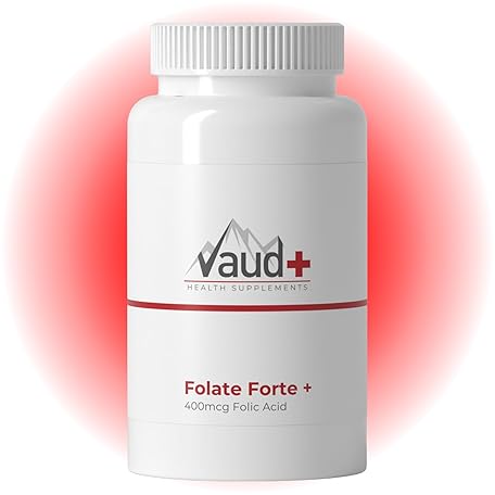 VAUD® Folic Acid Tablets High Dose - Folic Acid for Pregnancy and Pregnancy - 100 Tablets - High Dose with 400 mcg Folic Acid - Vegan - Natural - Laboratory Tested - Made in Switzerland