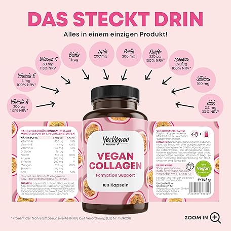 Vegan Collagen (180 Capsules) with Amino Acids, Vitamin A C E, Biotin, Silicon, Zinc and Manganese, Vegetable Alternative to Collagen Powder, Collagen Vegan (1 x 180 Capsules)