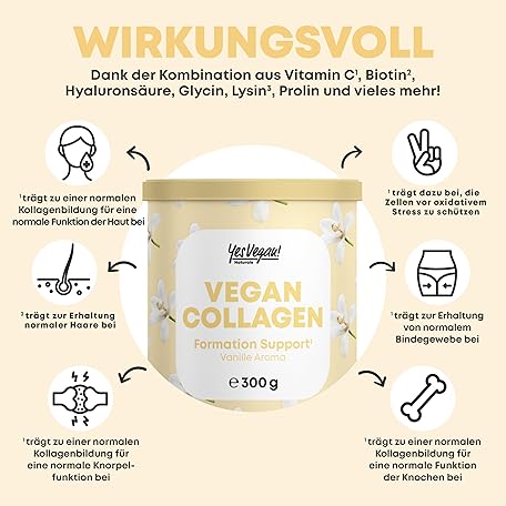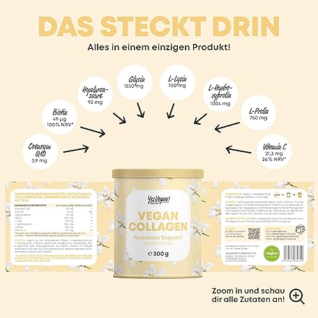 Thông tin sản phẩm Vegan Collagen Powder (300 g) Various Flavours with Amino Acids, Vitamin C, Biotin & Coenzyme Q10 I Vegetable Alternative to Collagen Capsules I Collagen Vegan Flavour: Vanilla