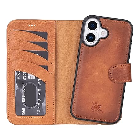 • Venito Schutzhülle aus Leder, kompatibel mit iPhone 17, handgefertigt, Premium-Leder, abnehmbare magnetische Klappabdeckung, Ständer, Fall-/Aufprallschutz, starke Magnete, 6,3 Zoll, Antikbraun
