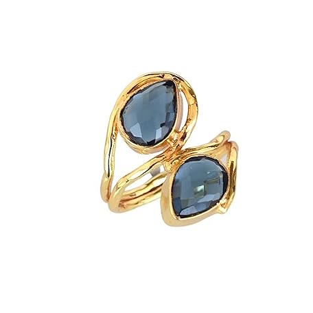 Veracity Jewellery Iolite Rings For Women Girls - 18k Gold Plated Rings - September Birthstone Handmade Jewellery - Gift For Her Birthday Anniversary Wife Mom Girlfriend Sister