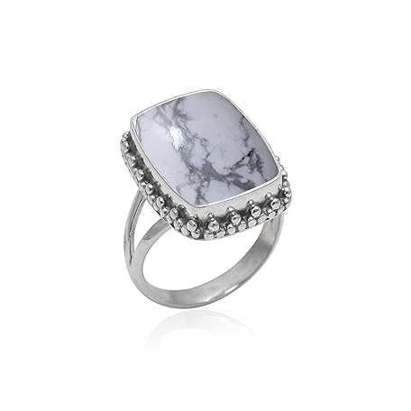 Veracity Jewelry 925 Sterling Silver Gemstone Statement Rings – Gift For Birthday Wedding Anniversary Mother's Day Ring – Vintage Boho Style Handmade Gifts (Howlite White Buffalo Turquoise)