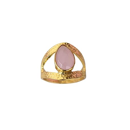 Veracity Jewelry Rose Quartz Rings For Women Girls - 18k Gold Plated Rings - January Birthstone Handmade Jewellery - Gift For Her Birthday Anniversary Wife Mom Girlfriend Sister