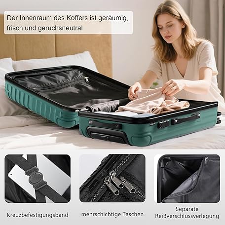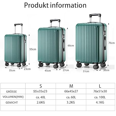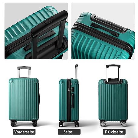 Sản phẩm VERAGE Shiled 4 Twin Wheel Suitcase, TSA Expandable Trolley Set 3-Piece S M L Large ABS Hard Case with Hand Luggage, dark green, L đang được bán với giá ưu đãi là $77.0303 tại nước Đức.