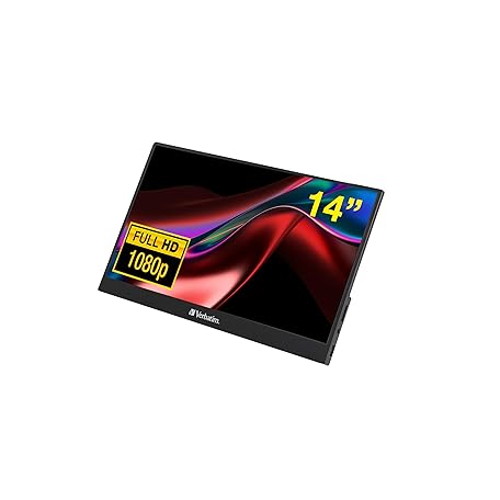 Thông tin sản phẩm Verbatim PM-14 Portable Monitor, Mobile 14 Inch Full HD Screen for Laptop, Tablet, Smartphone, PS5 or Nintendo Switch with USB-A, USB-C and HDMI Port, Black