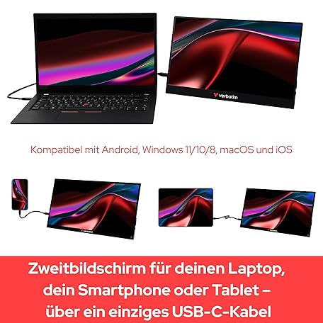 Sản phẩm Verbatim PM-14 Portable Monitor, Mobile 14 Inch Full HD Screen for Laptop, Tablet, Smartphone, PS5 or Nintendo Switch with USB-A, USB-C and HDMI Port, Black đang được bán với giá ưu đãi là $159.6959 tại nước Đức.