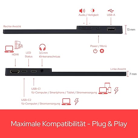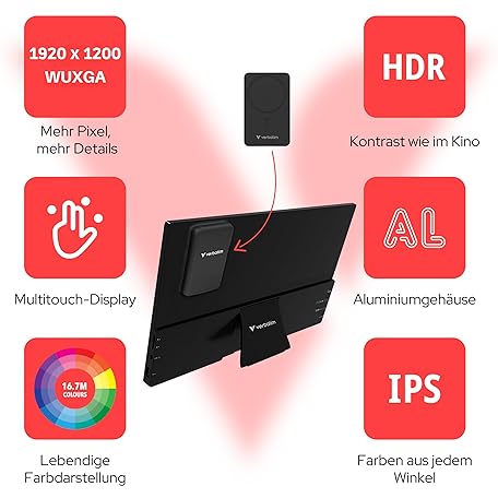 Sản phẩm Verbatim PMT-13 Portable Touchscreen Monitor 13.3 Inch Aluminium with Power Bank 5000 mAh, Mobile Full HD Screen for Laptop, Tablet, Smartphone, PS5, Nintendo Switch with USB-C and HDMI Port đang được bán với giá ưu đãi là $247.3755 tại nước Đức.