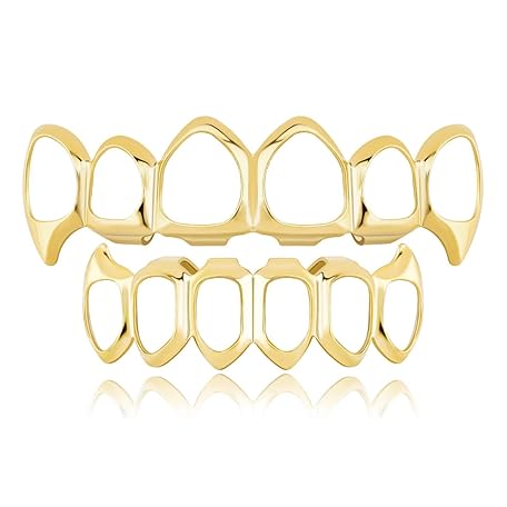 Vergoldete Grillz, Offenes Design Grillz-Kappen für Ober- und Unterkiefer Vampirzähne Hip-Hop-Grillz, für Männer und Frauen(Gold)