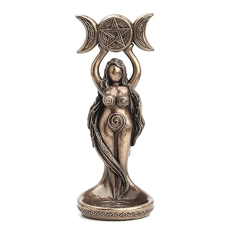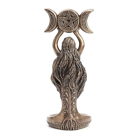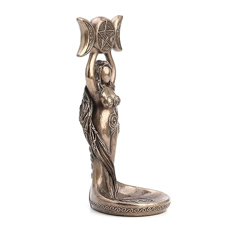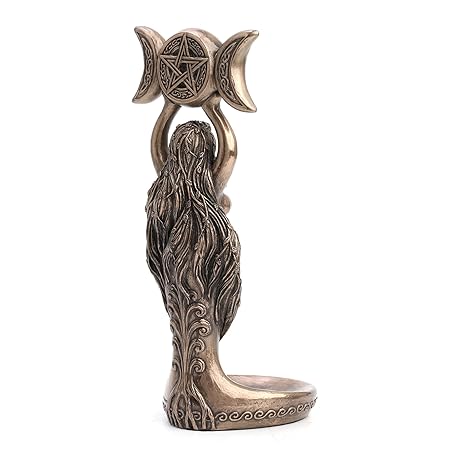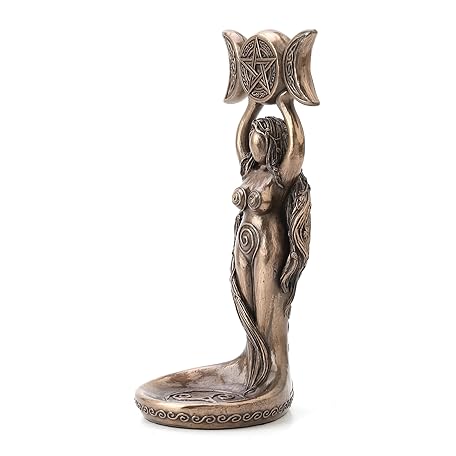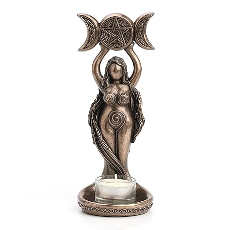 Veronese Design Bronze Finish Resin Tealight Holder 8.5" Tall 3 Moon Goddess