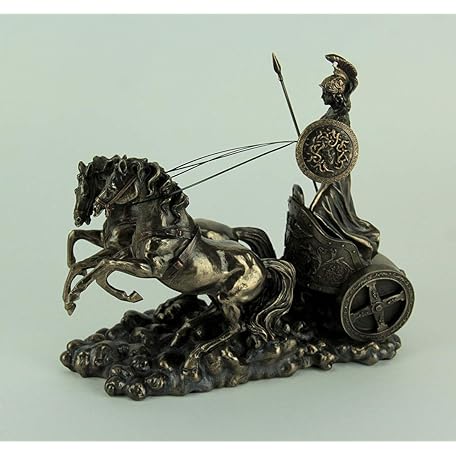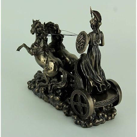 Veronese Design Greek goddess Athena with spear and shield riding on Chariot