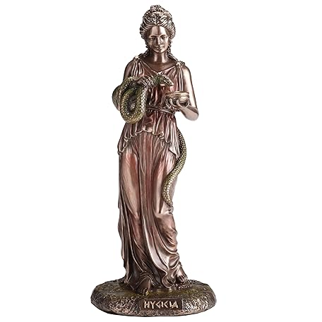 Veronese Design Hygieia Griechische Göttin der Hygiene, Kaltgussharz, Bronze-Finish, 16,5 cm