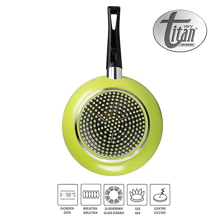 Thông tin sản phẩm VERY TITAN Frying Pan 24 cm, Green, Suitable for Induction Cookers, Non-Stick Coating Pan, for Oil and Low-Fat Frying, Heat-Conductive Aluminium, Made in Italy