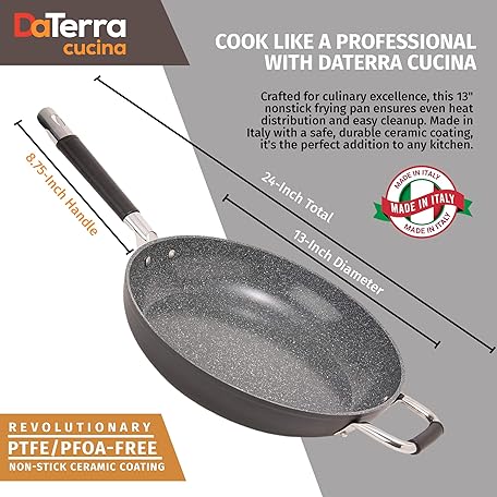 Thương hiệu DaTerra Cucina là cái tên nổi tiếng được rất nhiều khách hàng trên thế giới chọn lựa. Với kiểu dáng đẹp mắt, sang trọng, sản phẩm Vesuvio 32cm Frying Pan | Ceramic Coated Nonstick | Heat Resistant Silicone Handle | Durable, High Heat Aluminum Base with No PTFE, PFOA, Lead or Cadmium | Oven & Dishwasher Safe | Made in Italy là sự lựa chọn hoàn hảo nếu bạn đang tìm mua một món cho riêng mình.
