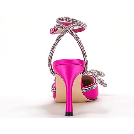 Thông tin sản phẩm VETASTE Damen-Sandalen mit doppelter Schleife, spitz, Knöchelriemen, Kristall-Pumps, Hochzeit, Brautparty, Stilettos, rückenfrei, Satin mit Absatz, Rosenrot, 38 EU