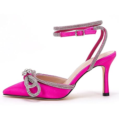 Sản phẩm VETASTE Damen-Sandalen mit doppelter Schleife, spitz, Knöchelriemen, Kristall-Pumps, Hochzeit, Brautparty, Stilettos, rückenfrei, Satin mit Absatz, Rosenrot, 38 EU đang được bán với giá ưu đãi là $36.733 tại nước Đức.