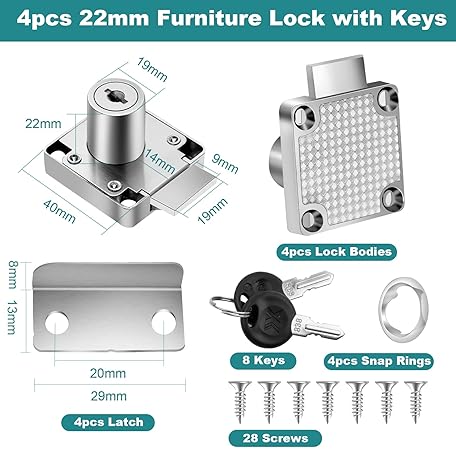 Sản phẩm VFANDV Pack of 4 Furniture Lock, 22 mm Security Cabinet Lock with Key Locker Lock Drawer Lock Screw-On Lock Drawer Lock for Mailbox Drawer Household Office đang được bán với giá ưu đãi là $10.2024 tại nước Đức.
