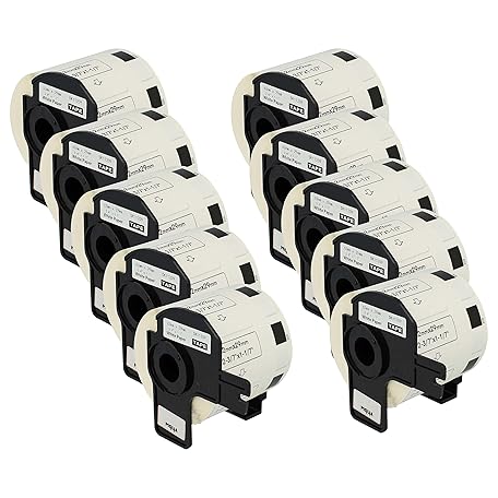 vhbw 10 x Label Roll with Holder 62 mm x 29 mm (800 Labels) Compatible with Brother PT QL-710W, QL-720, QL-700, QL-710 Label Printers